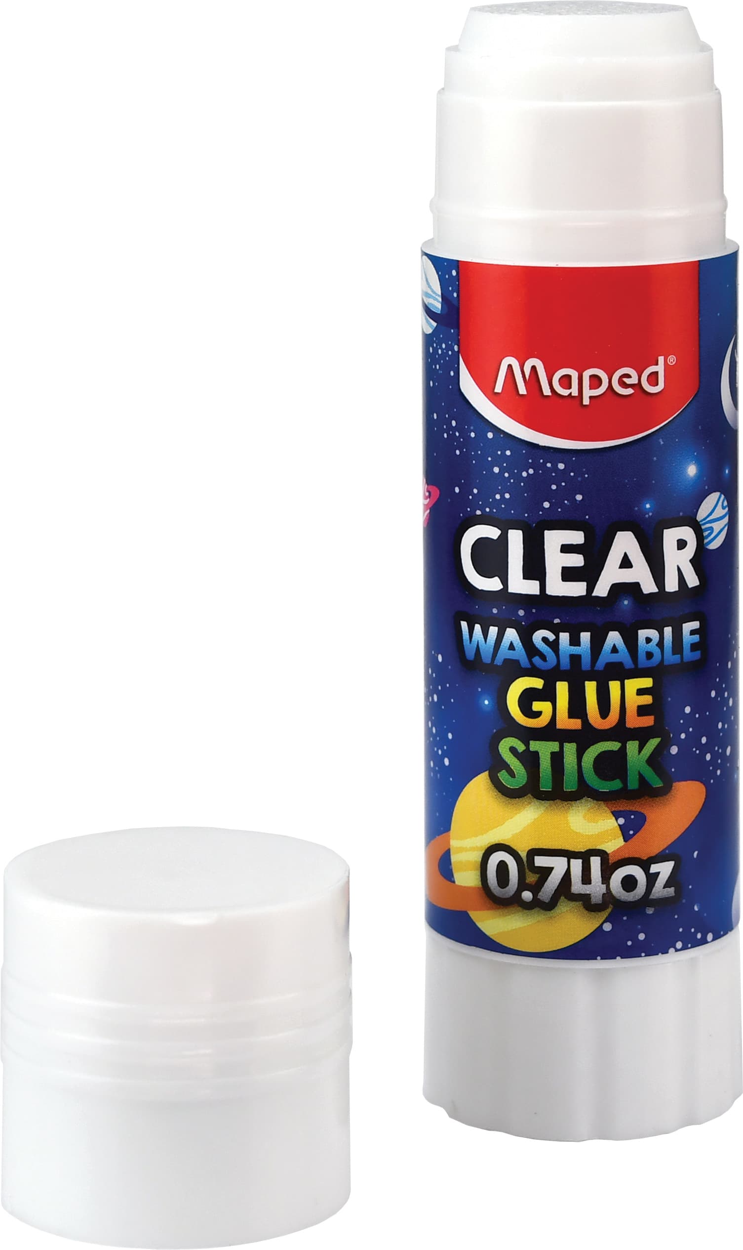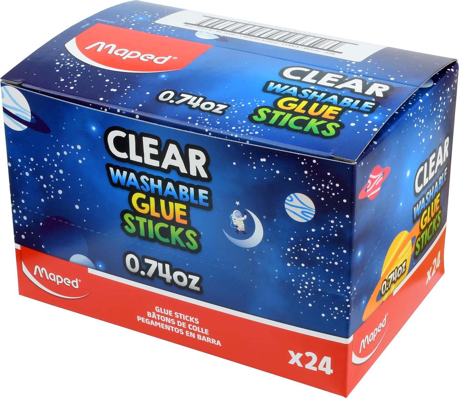 Maped Essentials Clear Washable Glue Sticks are a classic white school glue stick that goes down white but dries crystal clear! Premium glue holds strong and dries quickly on all common classroom materials, and the washable formula is easy to clean up with soap and water. Perfect for school, arts, crafts and more these large 0.74oz tubes are great for young hands to hold and are great at covering large areas. Safe, non-toxic formula quickly dries after application to secure. 24 piece display securely holds glue sticks in place with a tray so loose glue sticks always have a home to return to!