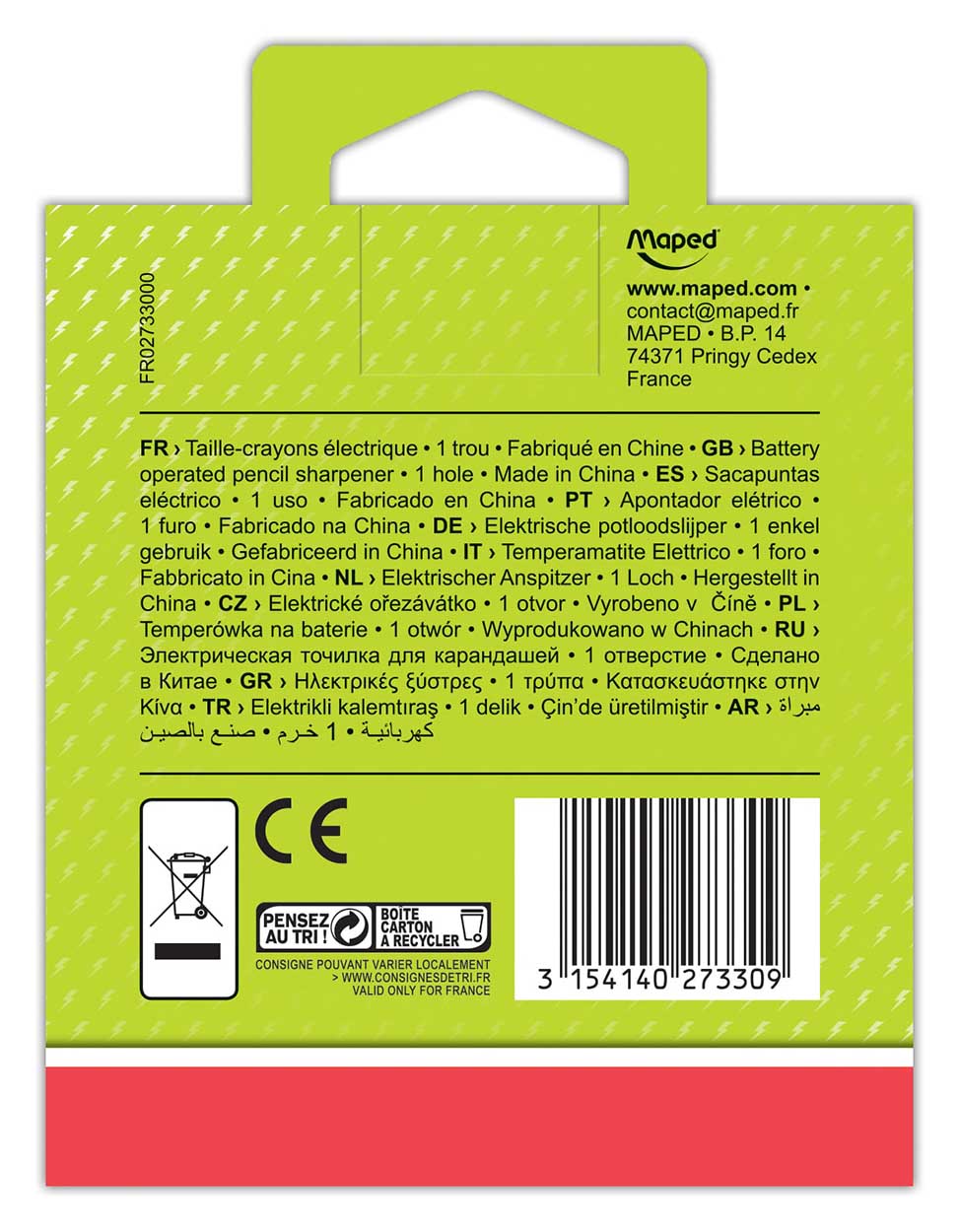 The Maped Compact 1-Hole Battery Powered Pencil Sharpener is perfect for school, home or office use!