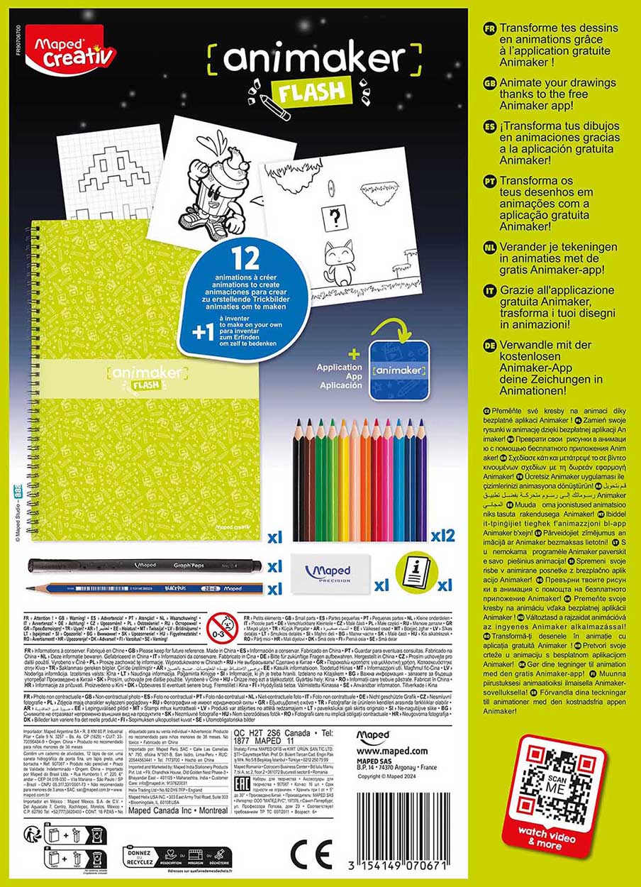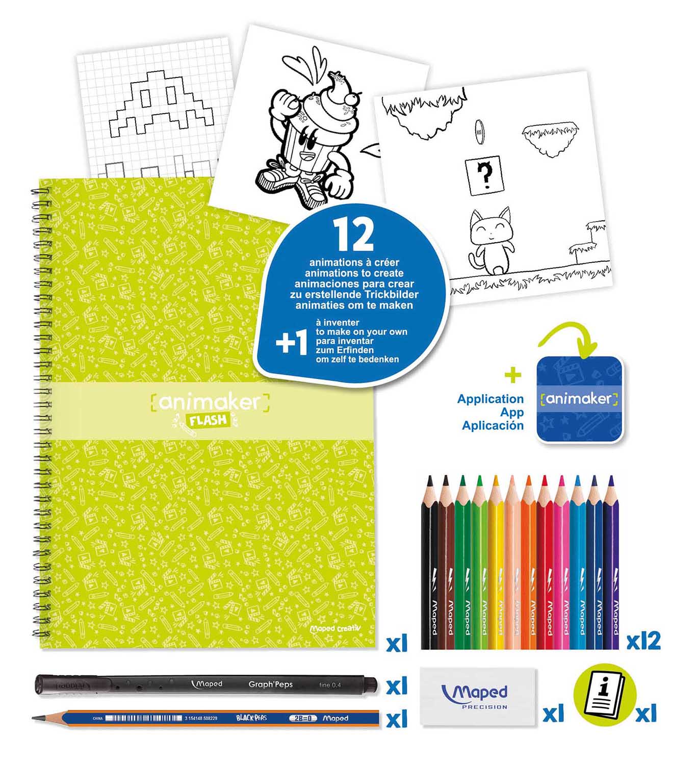 Animate your drawings thanks to Animaker Comic Strip Kit and FREE App! Color in the comic strips, add text & other customizing, and then use the FREE app to bring them to life as a .GIF! Kids color complete or invent their own stories for an unique & ‘WOW’ result to keep or share! Innovative way for kids to share their creativity & art in a digital world – Animaker App automatically converts comics! Contains 1 Notebook with 12 comic strips, 12 Color’Peps Triangular Colored Pencils, 1 Graph’Peps Felt Tipped Pen, 1 Black’Peps Graphite Pencil, 1 Vinyl Eraser & Link to FREE Animaker App. Dimensions: 0.6” x 8.5” x 12.2”