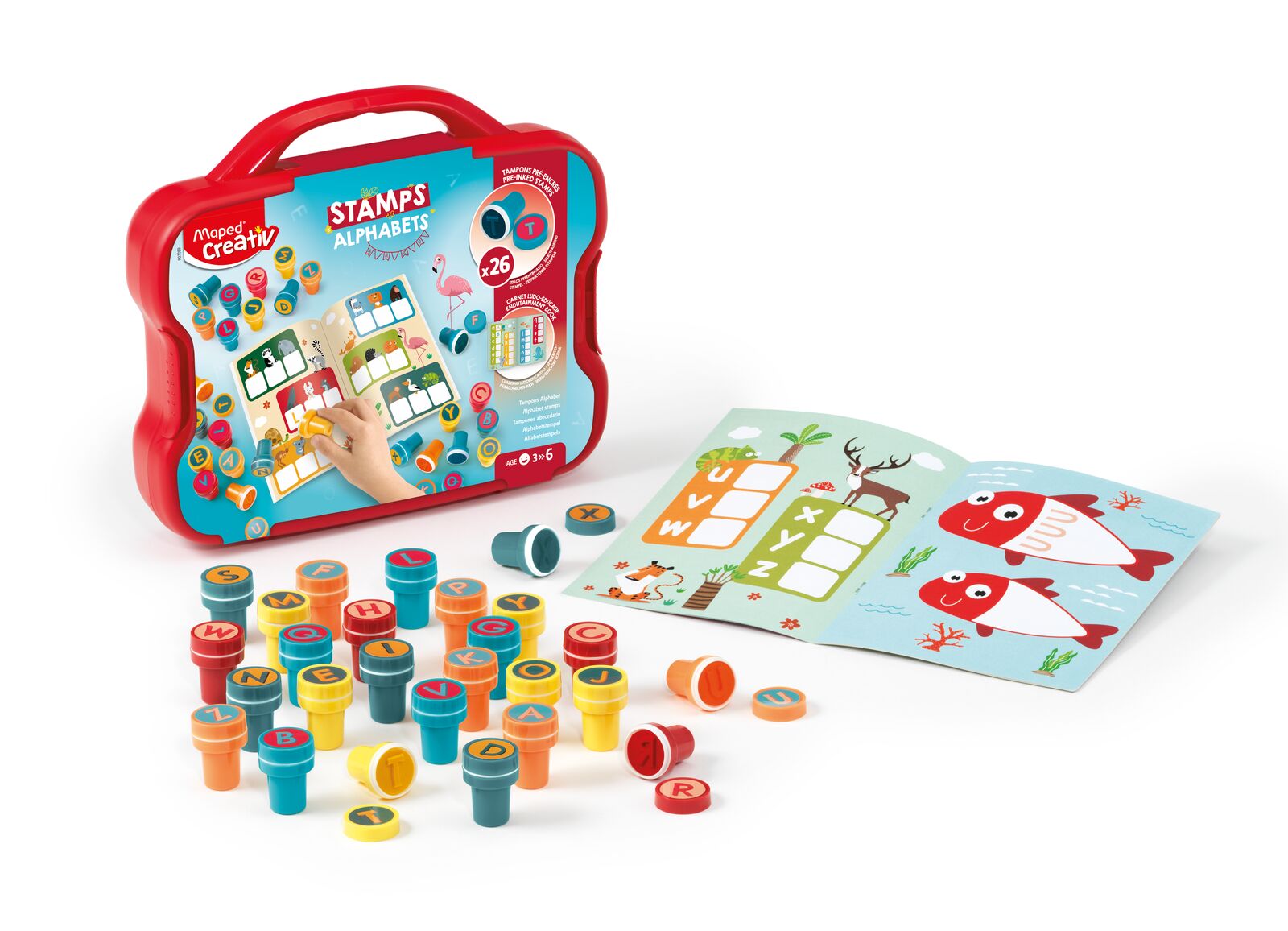 The Maped Creativ Alphabet Stamps Kit is the perfect way for 3+ year old children to build associations with letters and words! This Alphabet-themed creative box allows children to practice their understanding of letters in lots of fun and imaginative scenarios, building connections and showing just how creative they can be! The specifically designed stamps are perfect for young hands and don’t require a separate ink pad to use. Once the activity is over for the day, the items are easily stored in the reusable case. Reusable box includes: 26 ergonomic stamps with different letter and a educational booklet.