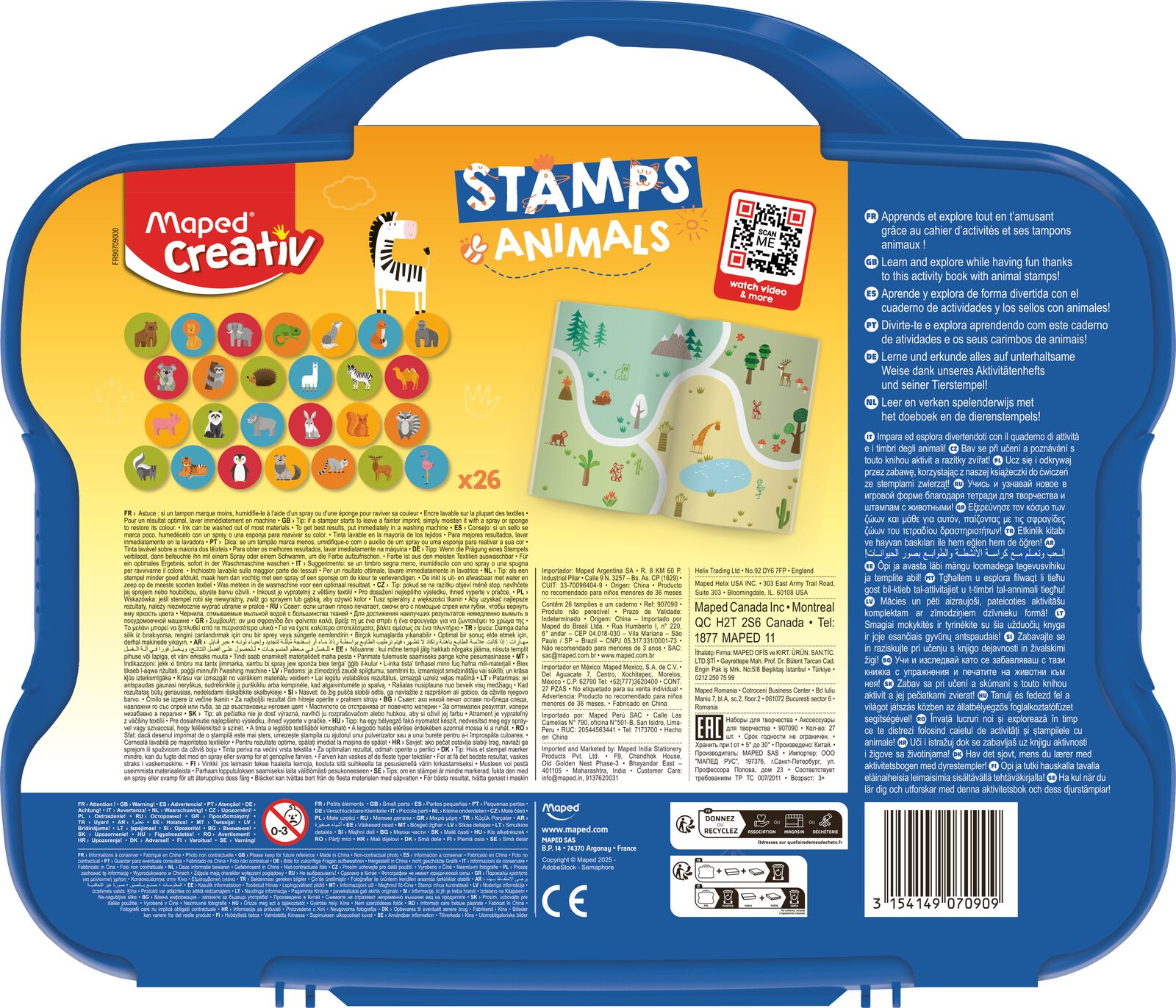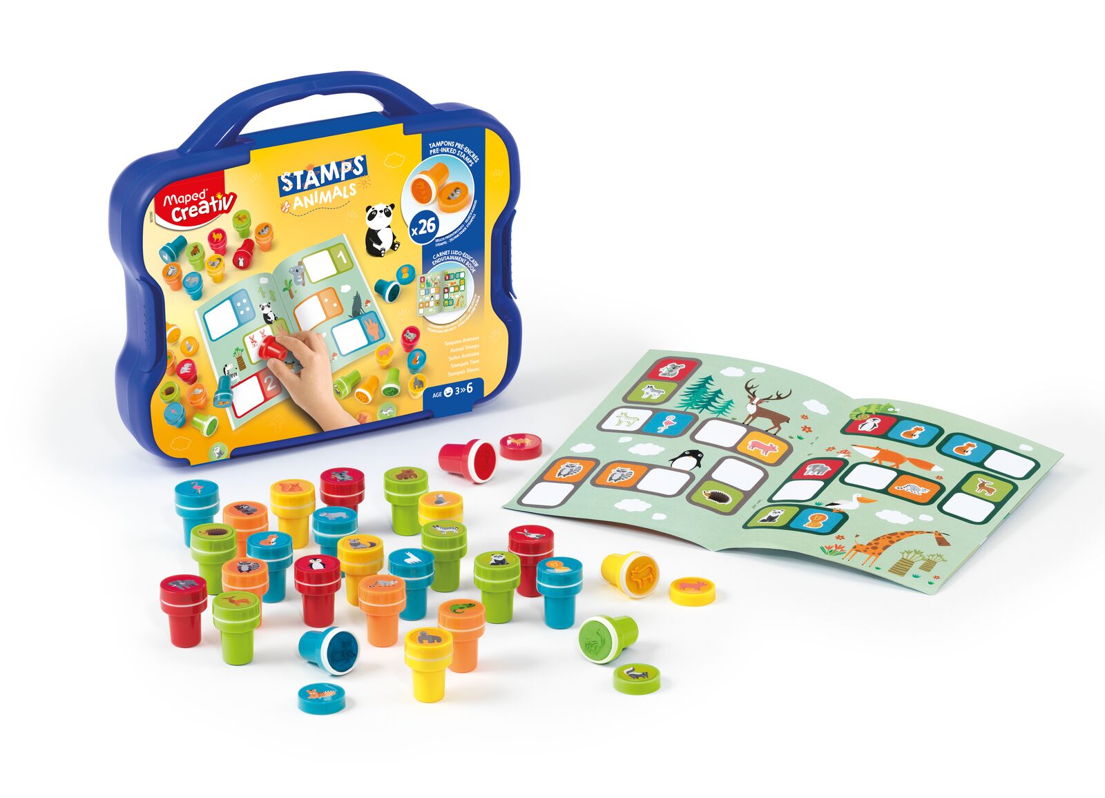 The Maped Creativ Animals Stamps Kit is the perfect way for 3+ year old children to build associations through counting & words with fun Animal friends! This Animal-themed creative box allows children to practice their understanding of numbers and puzzles in lots of fun and imaginative scenarios, building connections and showing just how creative they can be! The specifically designed stamps are perfect for young hands and don’t require a separate ink pad to use. Once the activity is over for the day, the items are easily stored in the reusable case. Reusable box includes: 26 ergonomic stamps with different letter and a educational booklet.