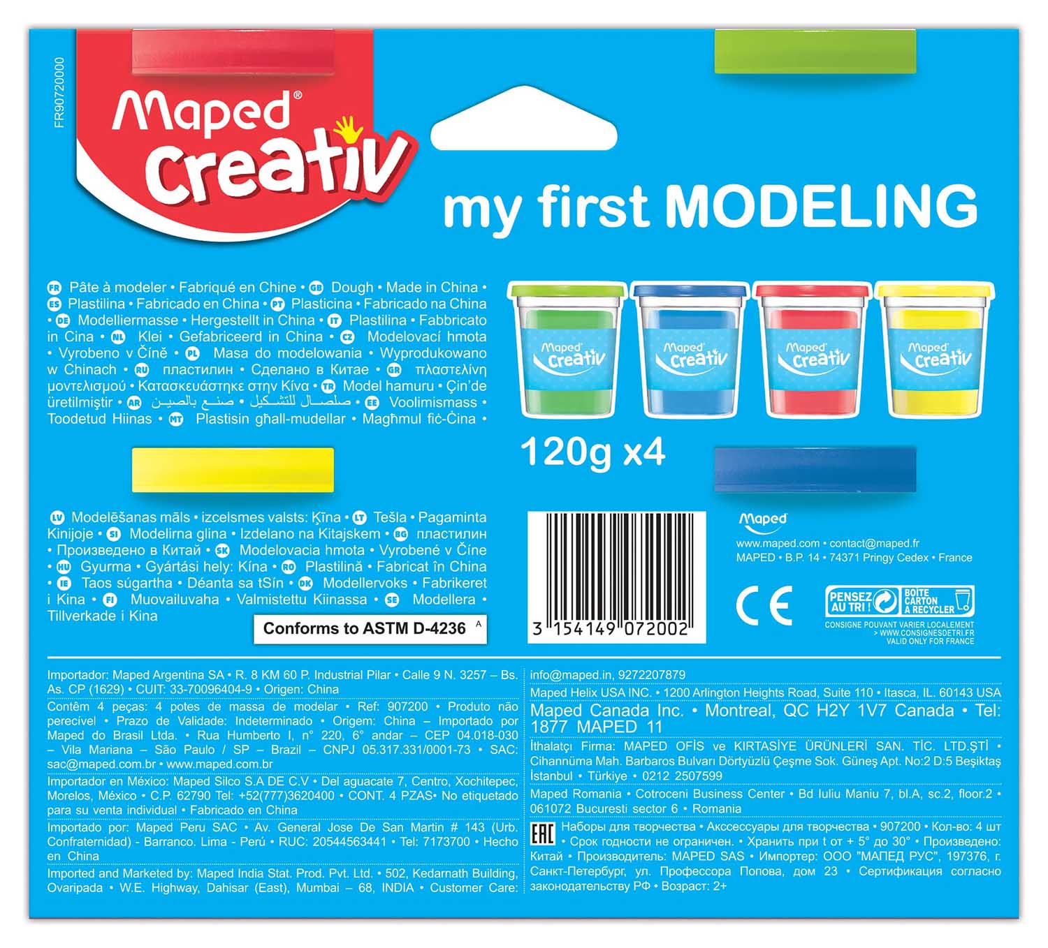 Explore the fun world of kid-friendly modeling dough with this fun 4 piece kit! Super-soft dough helps develop children’s dexterity and their imagination, and is easy to clean up with soap and water. Set includes 4 bright, fun dough colors in resealable 80g pots.
