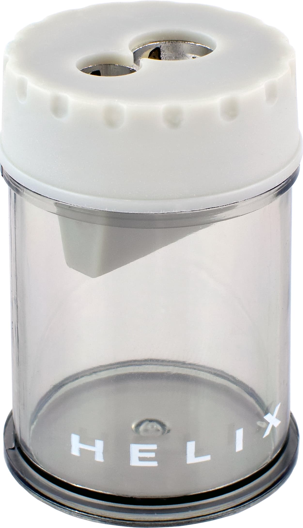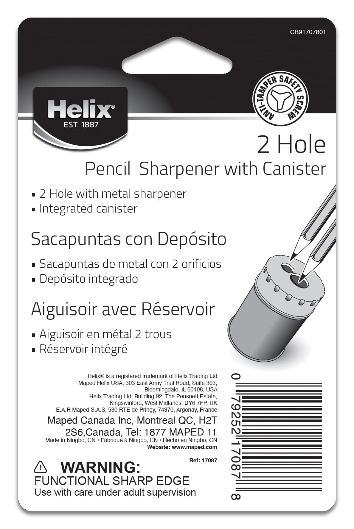 Keep your pencils sharp with the Helix Cylindrical 2-Hole Canister Pencil Sharpener!
