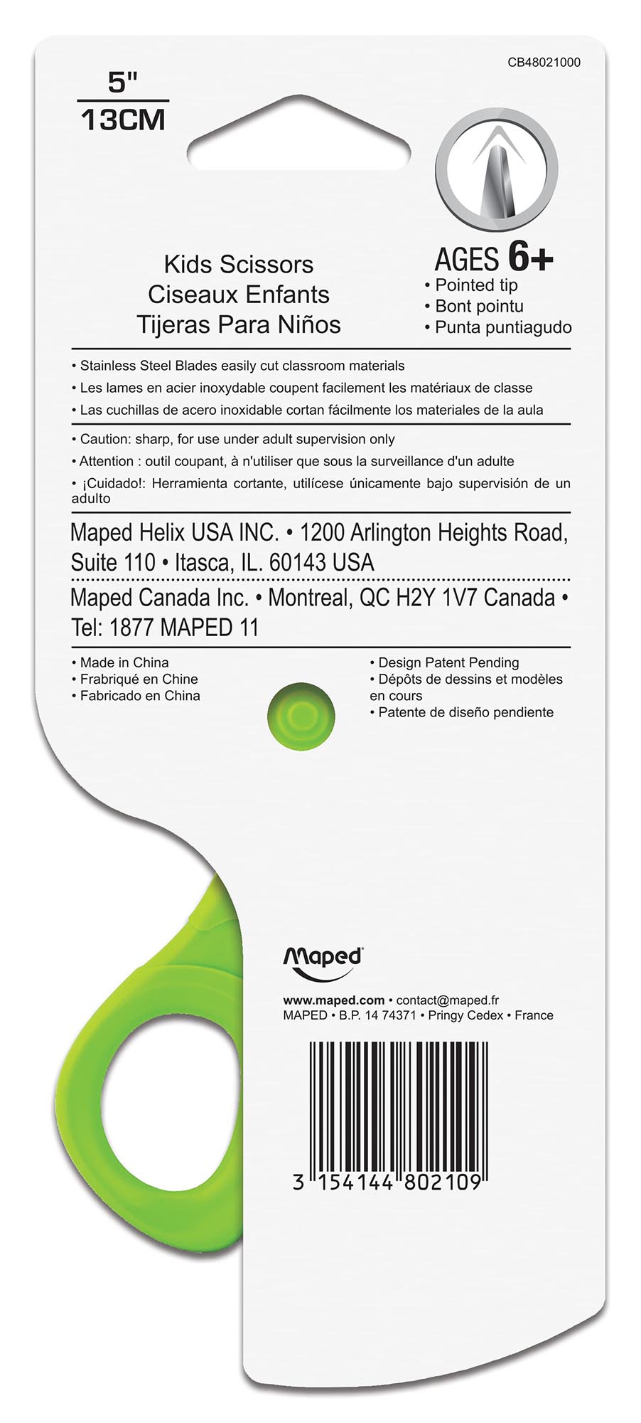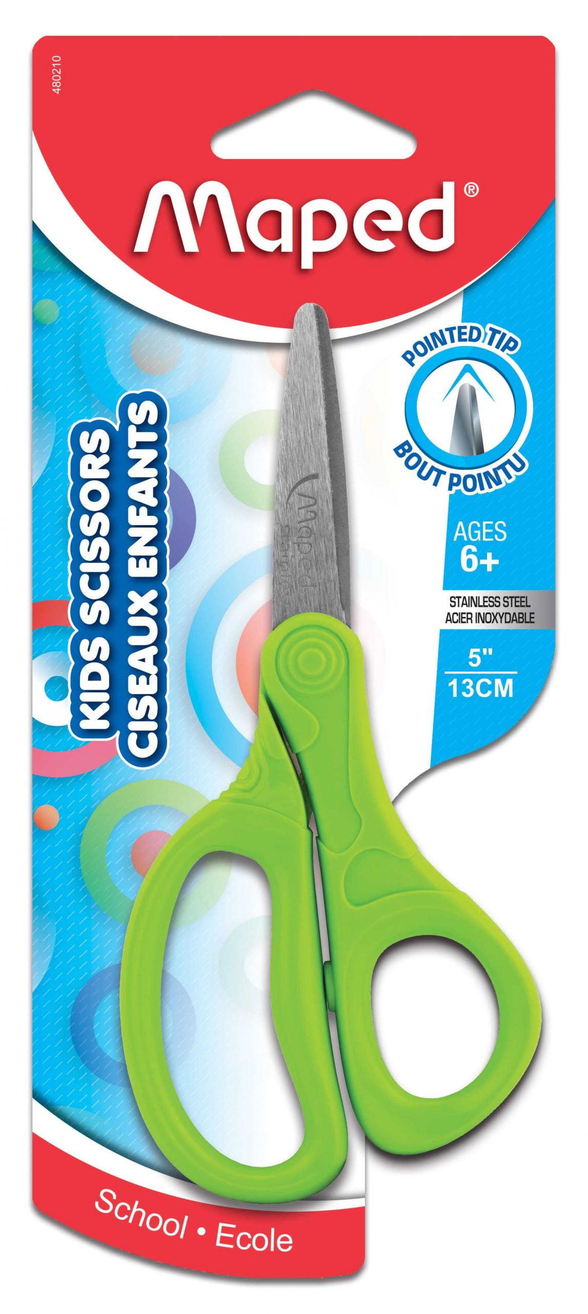 Maped Essentials Kids School Scissors are perfect for young students going back to school! Modern 5″ / 13cm design features Pointed Tip Stainless Steel Blades with a rounded tip that is safer others you can find on the market and are much more appropriate for young students. Eye-catching asymmetrical handles are perfect size for young hands to hold, and are perfect for students 6+ years old. Comes in assorted colors (Blue, Light Blue, Red & Green) and cannot be chosen at this time.