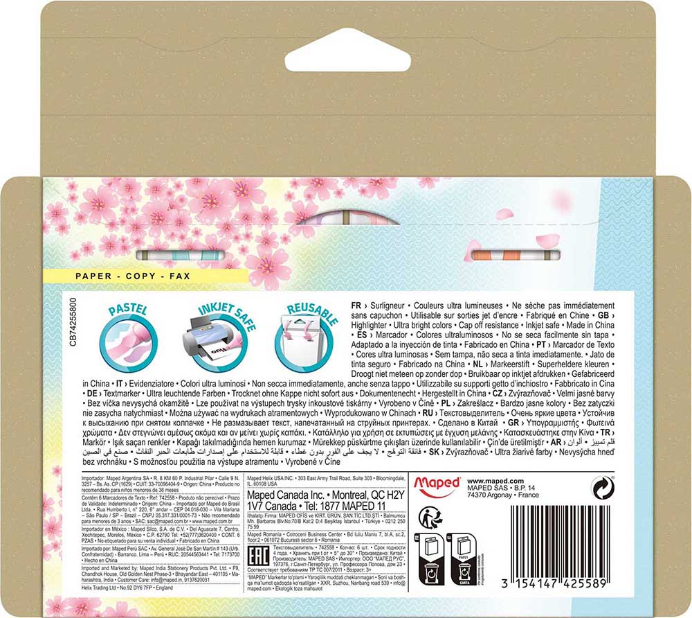 Fluo Pep Classic Pastel Highlighters are a fun new take on highlighters, perfect for school, home or office use! Their wide body fits comfortably in your hand and don’t roll of your desk, and the super trendy Pastel ink really lets you show off your style! The soft, dual-beveled tip easily draws 5mm or 1mm lines depending on the side you hold the highlighter, and consistent ink dispensing make this highlighter the right tool for small or large jobs. Safe on all paper, inks, graphite, faxes, ink-jet printing and more! Set includes 6 unique Pastel colors (Blue, Green, Pink, Purple, Rose and Yellow) and come in a reusable storage case!