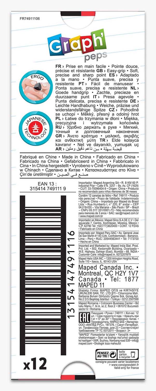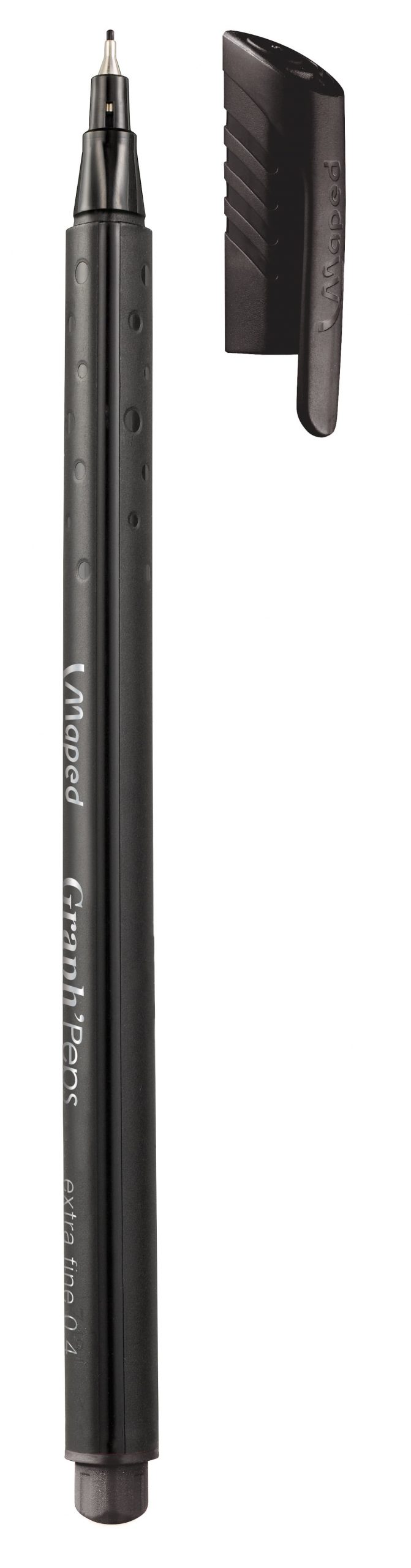 Maped Graph’Peps are perfect for writing, drawing, sketching and even everyday doodling! Bright, vibrant colors leap off the page from the 0.4mm nib-protected fine tip and will not bleed through most types of standard paper. Triangular shape will not roll and provides all day writing comfort. 12 pack of Black Pens are perfect for school, office or home use!