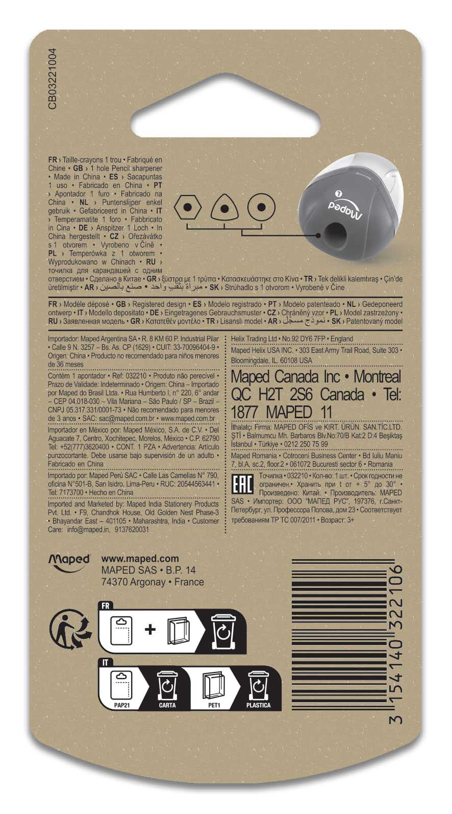 The Maped Igloo 1 Hole Left-Handed Sharpener is a true left-handed product; the design & blade are totally mirrored so a left-handed person can use this comfortably. Standard manual pencil sharpeners are designed for right-handed use because they only sharpen when spun clockwise, but for a left-handed user that is backward! Compact, ergonomic body is super comfortable to hold and small enough to fit into even the most cluttered of pencil cases. And the translucent, shatter-resistant receptacle keeps shavings contained and is easy to see when it is full for cleaning. 1 hole design easily sharpens all standard pencils, no matter the shape! Comes in assorted colors (Blue, Green & Pink) and cannot be chosen at this time.