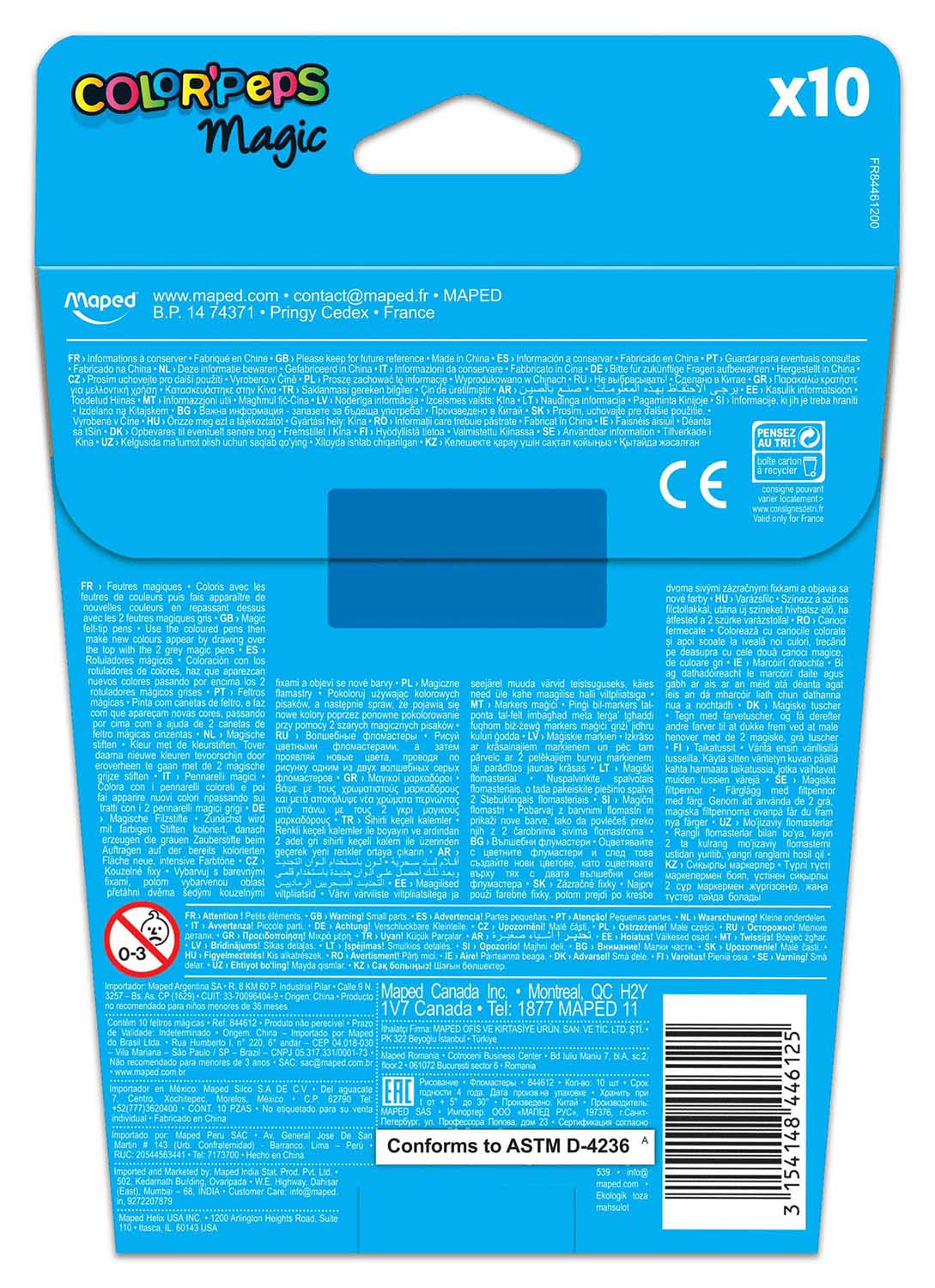 The perfect way to add some surprise to your drawing – Magic Revealer Markers instantaneously change in color like magic! Each marker changes colors with the included Magic Revealer Markers so 8 markers = 16 colors! Bright, vibrant color changes leap off the page and are a great way to add more details to your drawings. Blocked 3.6mm tip resists crushing so it’s great for young artists learning to draw. Set includes 8 Markers + 2 Magic Reveal Markers for 20 colors: Light Blue/Fluo Green, Blue/Fluo Yellow, Carmine/Pink, Green/Purple, Orange/Yellow, Purple/Pink, Red/Yellow & Yellow/Red. Ships in plastic-free packaging.