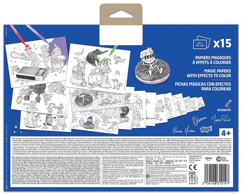 Maped Coloring Activates are a full range of unique & fun illustrations designed to mimic children’s imagination by superimposing common objects into unique scenes! The Magic Pattern-Revealing Paper features hidden patterns printed directly into the paper; color it with any type of marker to reveal them! Fun, hidden patterns add a real surprise to coloring and help to add even more character to the fun illustrations. Hidden patterns make each sheet totally unique during coloring – collect all 3 sets! Magic Pattern-Revealing Paper measure 11.7″ x 8.27″ and come in 2 assorted illustration bundles; style cannot be chosen at this time.