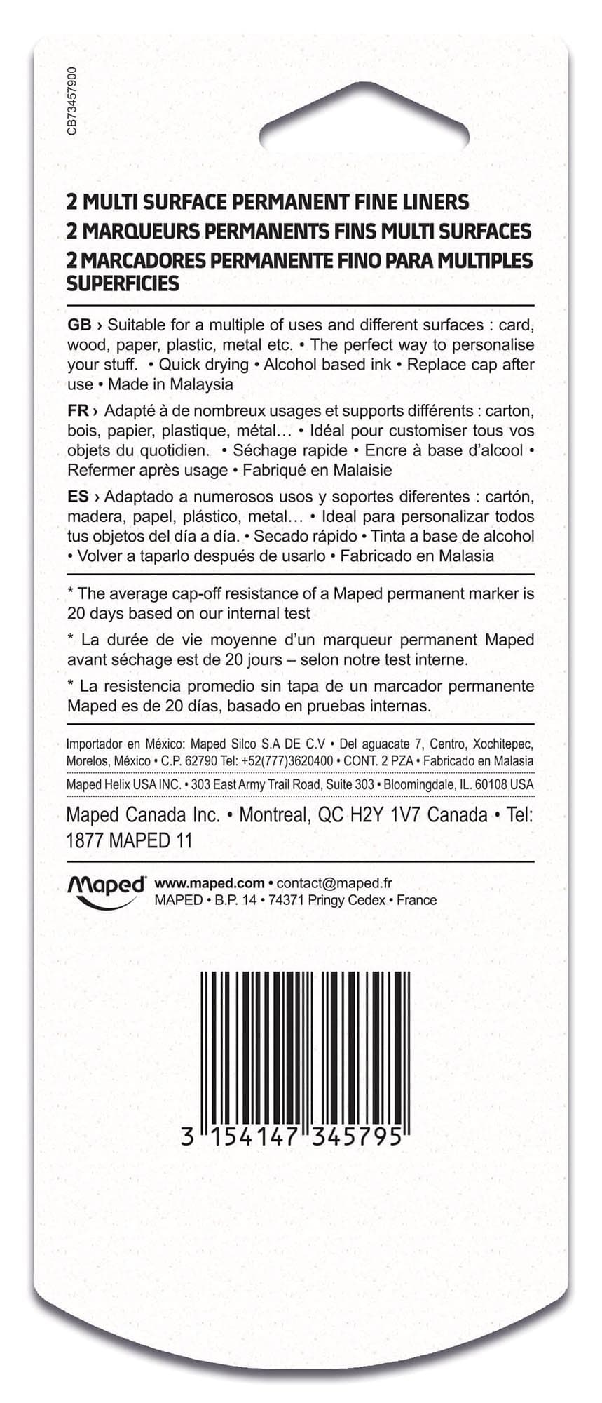 Maped Marker’Peps Permanent Fine Tip Markers are a new range of fine tipped multi-surface markers perfect for drawing, crafting, school, home, the office and more! Super vibrant inks let your artworks and notes stand out, and is designed to last up to 20 days without drying out if the cap is left off! Markers feature low odors to avoid any concerns about headaches, and the ink dries quickly and will not bleed through paper! Classic 1mm bullet tip is great for all uses, and the pen-style body is easy to hold and use.