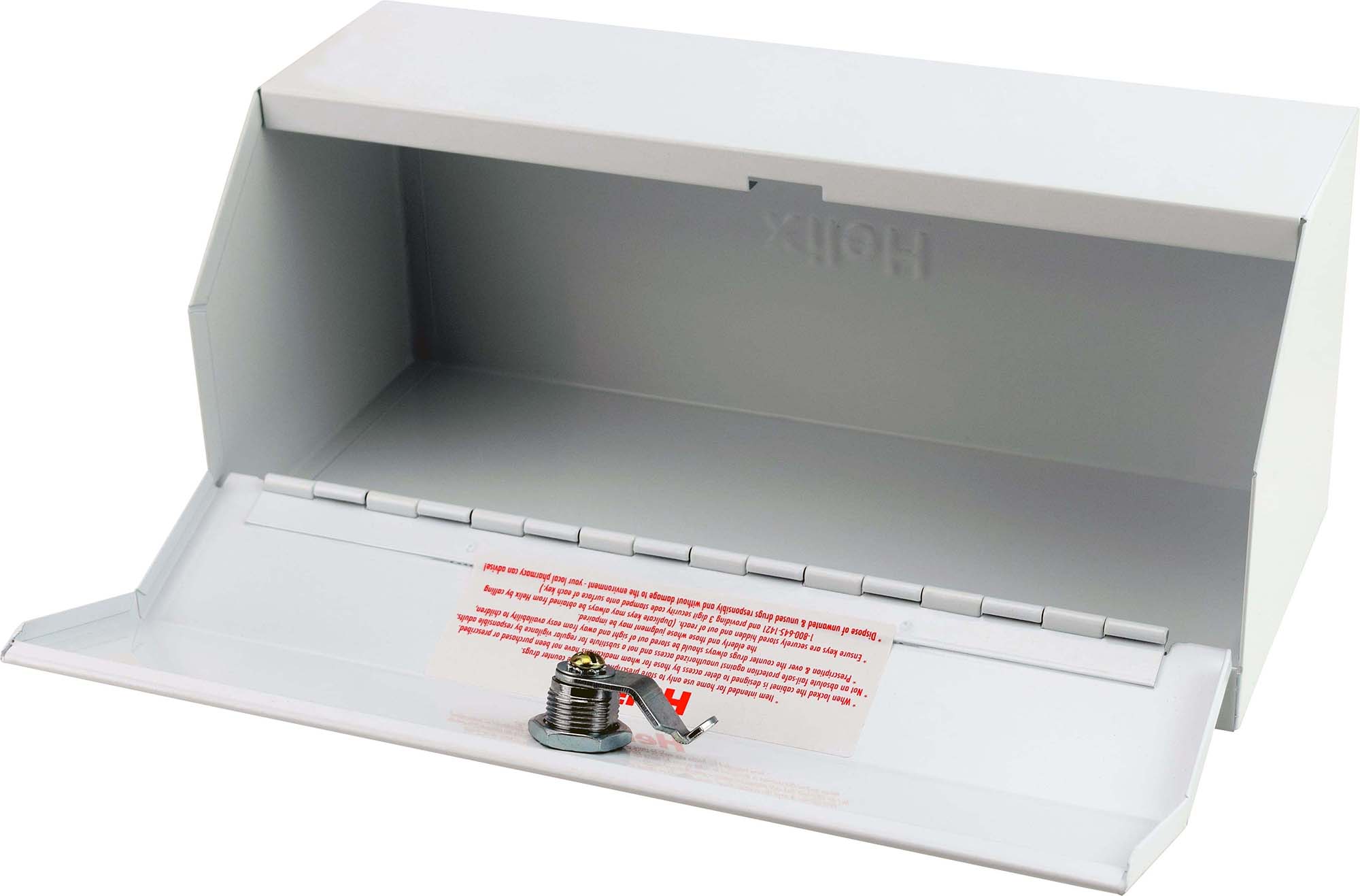 Ideal for home, office, and dorms, the Lockable Drug Cabinet keeps prescription drugs locked away from children and those for whom they are not prescribed. Heavy duty steel safe mounts easily to a wall or cabinet with included hardware in multiple positions! Durable, white powder coat finish easy to clean and doesn’t draw extra attention to drugs stored inside. Safe includes 2 keys for lock, screws and anchors for mounting and a Red Cross applique. Not intended to act as an absolute fail-safe to entry. Dimensions: 11-1/4″ x 4-3/4″ x 4-1/4″
