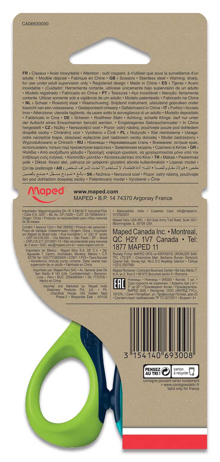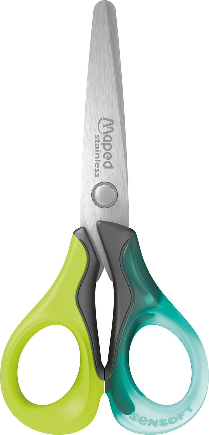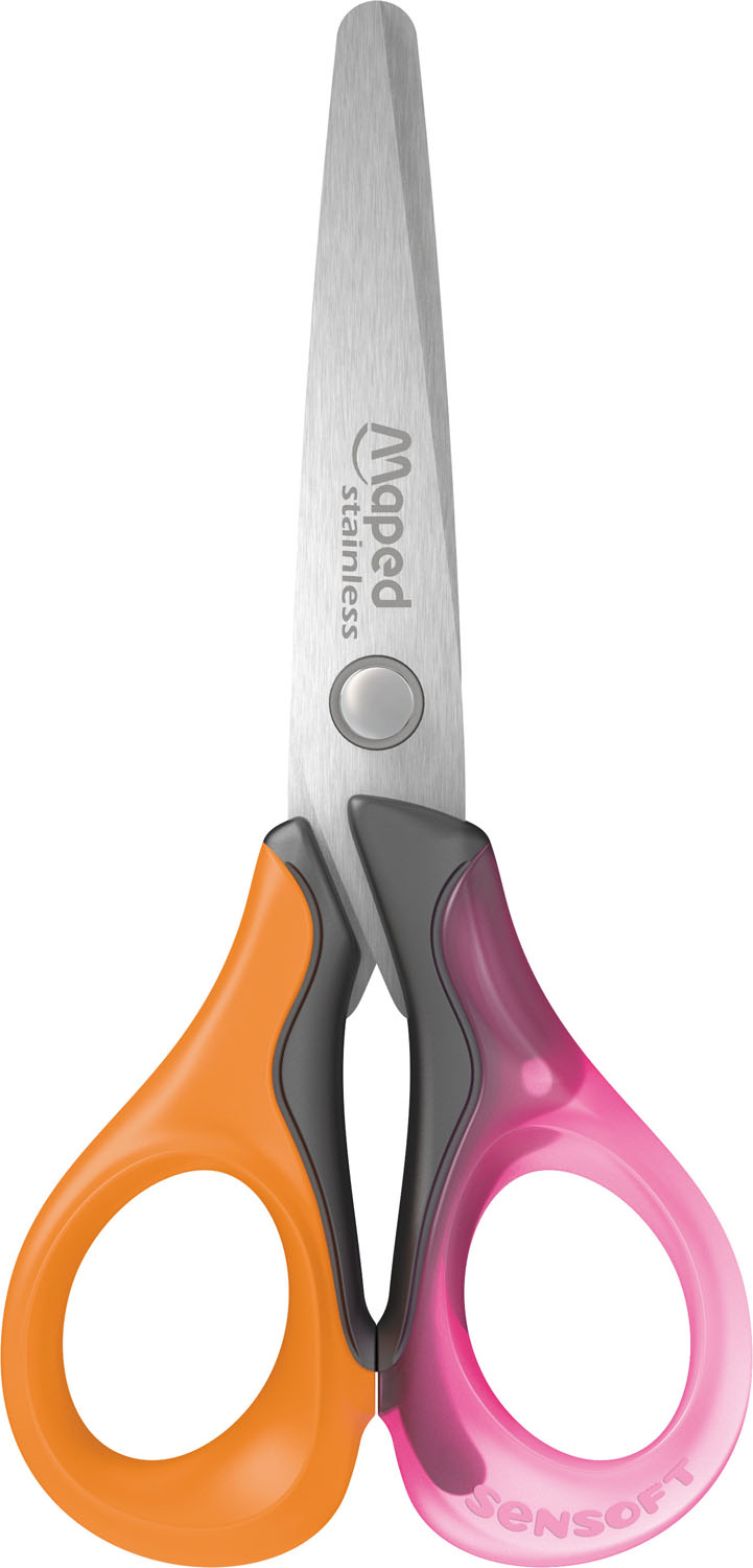 Maped Sensoft Scissors are truly focused on ergonomics – unique, super-soft and flexible finger loops designed to provide maximum comfort while cutting! Flexible rings are also ideal for those learning to cut or who have motor function issues as they mold to the fingers rather than forcing a hand into a specific position. Precision ground 5″ stainless steel blades for long lasting sharpness and optimum performance! Will not rust or tarnish, & dishwasher safe! Scissors come in assorted colors (Gray/Blue, Red/Orange & Blue/Pink) and cannot be chosen at this time.