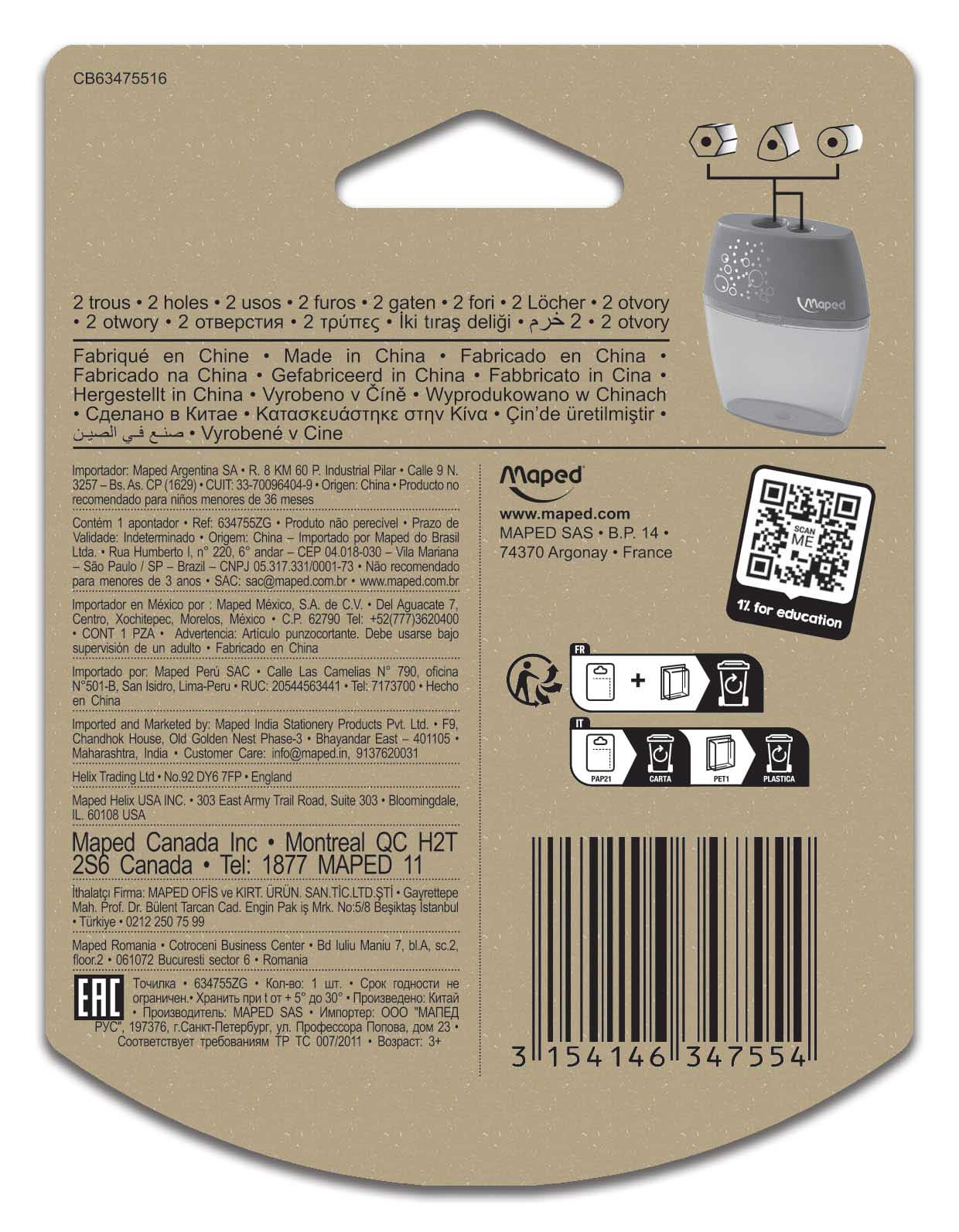 Keep your pencils sharp with the Maped Shaker 2-Hole Pencil Sharpener!