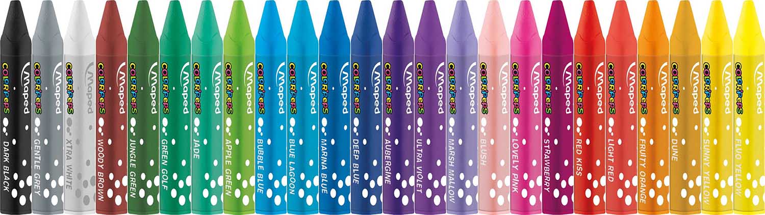 Color’Peps Triangular Oil Pastels are the perfect tool to introduce young artists to the whole range of pastels! Characterized by smooth and even coloring, these pastels are easy to blend and smear to any desired result and the vibrant pigments leap off the page. More comfortable than a round pastel, the oversized triangular body naturally indexes your fingers in the correct spot for more comfortable use and is recommended by teachers! The unique shape also stops the pastels from rolling off a desk and all come wrapped in paper to keep hands clean. 24 Pack includes the following colors: Eggplant, Red Kiss, Strawberry, Light Red, Xtra White, Sunny Yellow, Dark Black, Blush, Woody Brown, Bubble Blue, Marina Blue, Blue Lagoon, Deep Blue, Dune, Fluo Yellow, Green Golf, Apple Green, Jungle Green, Gentle Grey, Jade, Marshmallow, Fruity Orange, Lovely Pink & Ultra Violet.